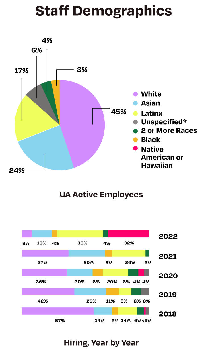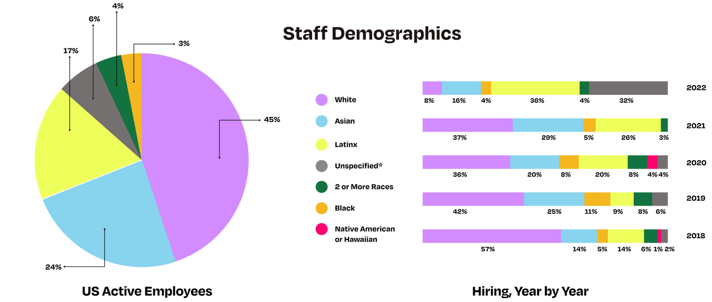 * Employees have the option of disclosing their demographic information at TOMS. “Unspecified” represents those who have opted out.