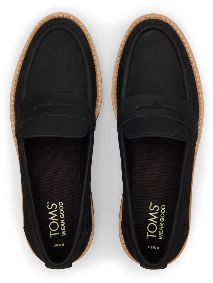 - Leather upper. TOMS leather products support responsible manufacturing via the Leather Working Group.