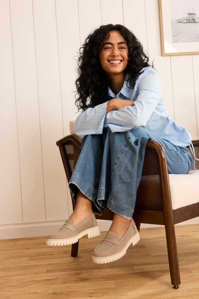 Level up your look with the Cara loafer - featuring perfectly chunky lugged soles and sleek suede uppers. Standing 1.5" tall with a rubber grip and CloudBound™ insoles, this go-with-anything style is both comfortable and supportive.