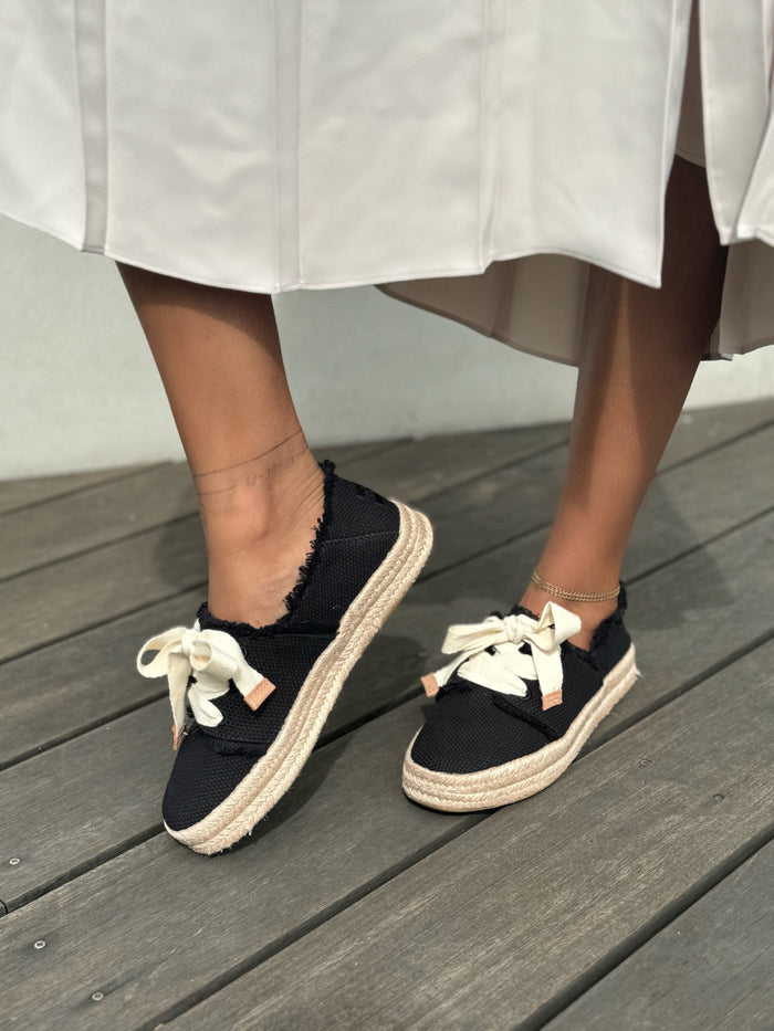 Carolina Lace-Up Espadrille - Black Beachside Woven