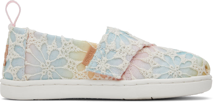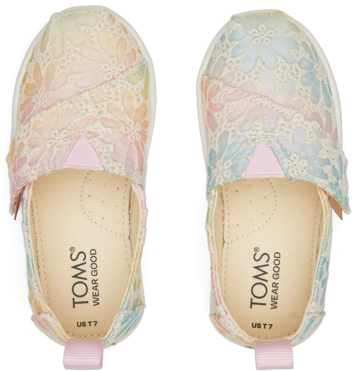 Our toddler kids Alpargata shoe in colourful ombre floral lace. The breathable textile uppers and cushy soles will keep your little one comfy for a full day of play. Plus, with a heel pull tab and easy slip-on design, they can put them on all by themselves!