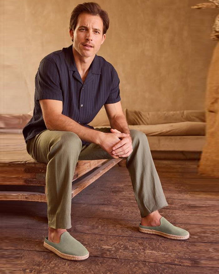 Where effortless ease meets elevated styling. The Santiago Mule espadrille pairs a suede upper with a rope-wrapped midsole and mule construction for a laid-back, warm-weather look. Slip on with denim or shorts for any casual occasion.