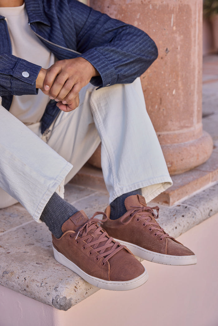- Leather upper. TOMS leather products support responsible manufacturing via the Leather Working Group.