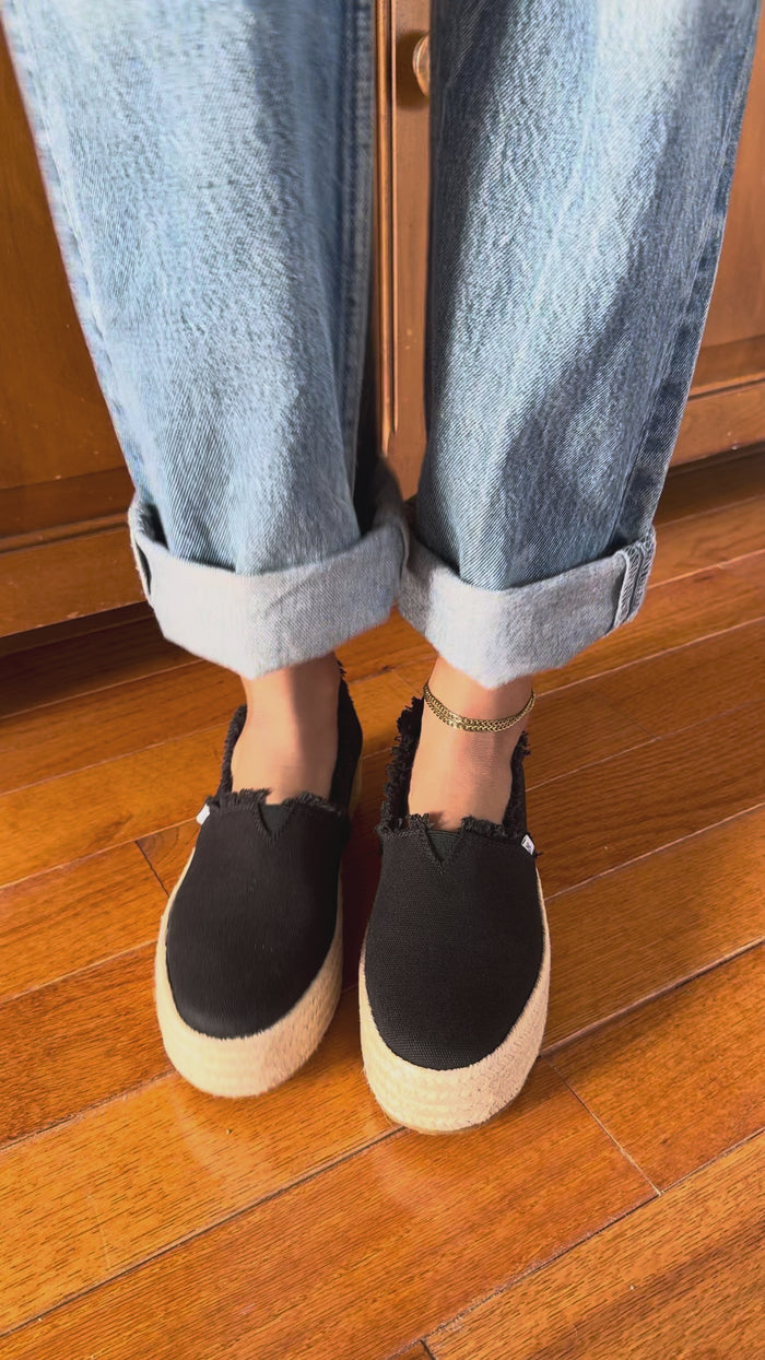 Valencia Platform Espadrille - Black Canvas